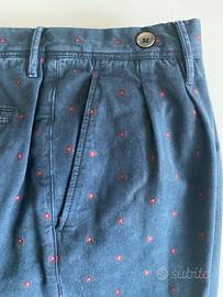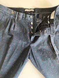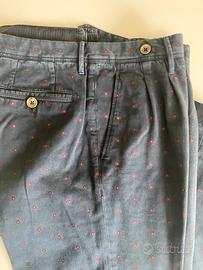Fantastici ed introvabili Pantaloni sartoriali GTA, tg. 50, tessuto cotone invernale stretch blu (microfantasia a motivo floreale), bottoni in metallo, 8 passanti da 8mm, doppia pince, risvolto, ottimo stato, come nuovi, carrot fit.