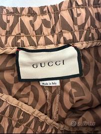 Pantaloni Gucci originali modello jogger, un capo iconico ed elegante, perfetto per chi ama lo stile casual luxury senza rinunciare alla riconoscibilità del brand. Il design è caratterizzato dal celebre motivo GG all over in tonalità marrone, reso ancora più distintivo dalle inconfondibili bande laterali Web verde e rosso, simbolo intramontabile della Maison Gucci. Il modello è comodo e pratico: vita elasticizzata con coulisse regolabile, fondo elasticizzato alla caviglia e tasche laterali con zip Gucci logata, dettagli che uniscono stile e funzionalità. Realizzati in Italia, con materiali di qualità (55% poliestere, 45% cotone e dettagli in poliammide), sono adatti sia a look casual che più ricercati. La taglia è XS, con vestibilità slim. Misure: vita 33 cm (con elastico a riposo), lunghezza 97 cm, gamba larga 26 cm. I pantaloni sono in ottime condizioni, come mostrato nelle immagini. Originalità garantita, con etichette interne e zip Gucci visibili. Perfetti per chi cerca un capo firmato, riconoscibile e di alta qualità. Per qualsiasi informazione, scrivimi senza problemi! #gucci #miumiu