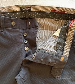 Pantaloni Gutteridge blu, taglia 32, vestibilità slim fit, fantasia puntellata, ottime condizioni. Misure: 43 cm girovita, 30 cm interno coscia, 96 cm lunghezza, 17 cm caviglia.