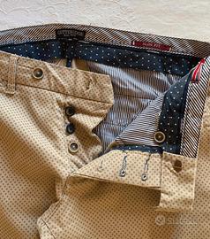 Pantaloni Gutteridge beige, taglia 32, vestibilità slim fit, fantasia puntellata, ottime condizioni. Misure: 43 cm girovita, 30 cm interno coscia, 96 cm lunghezza, 17 cm caviglia