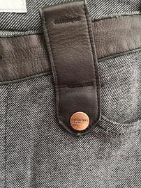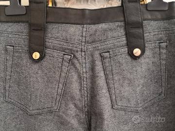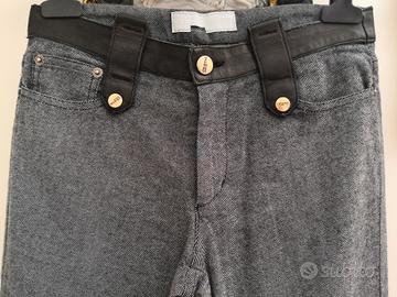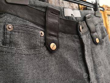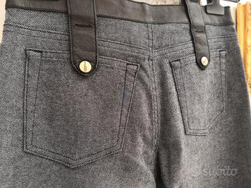Pantaloni Ice Jeans in tessuto grigio con dettagli in ecopelle nera in vita e bottoni dorati. - Vita alta. - Chiusura con zip e bottone. Taglia 27 - Tasche anteriori. - Gamba dritta.