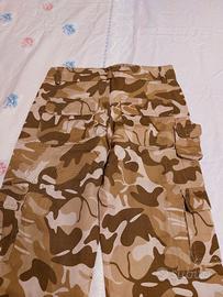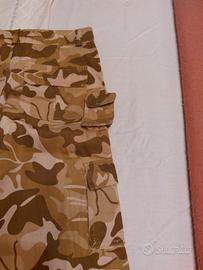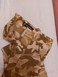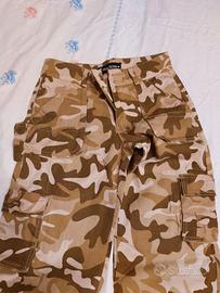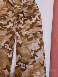 Vendo dei pantaloni tipo mimetico in cotone 95 % e 5% lycra. Sono nuovi senza cartellino. Hanno tante comode tasche. Chiudibile in fondo con spaghetto ma possono stare anche larghi aperti. Se be può fare diverso uso sia come abbigliamento normale, o sport, danza hip hop ecc. Ne ho diverse paia disponibili. Taglia M L e una XL. Sconto per chi acqista tutti . DISPONIBILE per misurazioni.