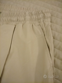 Nuovi con cartellino pantaloni beige in eco pelle elastico in vita e tasche di Paola Prata tg 44