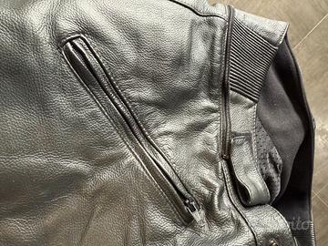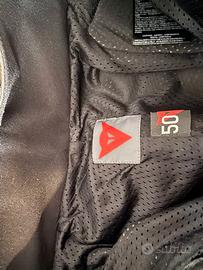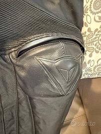 pantaloni in pelle da moto neri Dainese, tg 50, praticamente nuovi, con protezioni e con cerniera per attacco al giubbotto, vendo causa inutilizzo.