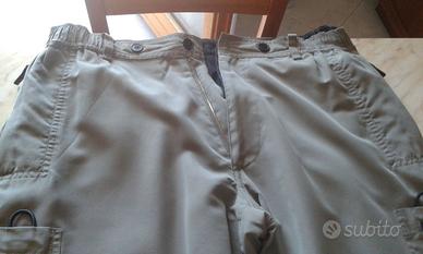 Pantaloni in in stoffa di colore verde, con diverse tasche e cerniere (alle tasche laterali e alle caviglie per allargare la gamba), con felpatura interna. La felpatura può essere tolta, è agganciata tramite dei bottoni al pantalone esterno, è molto calda e quindi rende utilizzabili questi pantaloni sia d'inverno (completi) sia d'estate (senza felpatura).