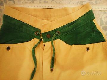 Originali pantaloni in stile vintage giallo e verde con laccio, taglia piccola in buone condizioni. Manca purtroppo il talloncino della taglia in caso fare riferimento alla 2^ foto (31 cm. da fianco a fianco). Se in provincia, entro qualche chilometro, eventuale consegna a mano. No sconto.