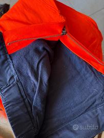 Ginocchia pre-formate per un maggior comfort. Nastro fluo/reflex su passante tubolare posteriore.