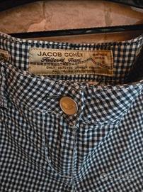 Vendo pantaloni originali Jacob Cohen da donna, elegante fantasia a quadretti bianco/blu, ideali per un look raffinato e casual chic.