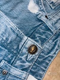 Pantaloni Jeans estivi corti azzurri celesti con schizzi bianchi e strappi