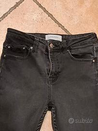 pantaloni jeans nero sbiadito Zara tg XXS o 36. Skinny. 5 tasche. condizioni come da foto. Misure: cintura cm 34. Fianchi 41. Cavallo 23,5. Coscia 18. Fondo 12. Lunghi 91. Faccio sconti sui set. Disponibile a incontrarci a Bologna per lo scambio a mano o spedizione veloce