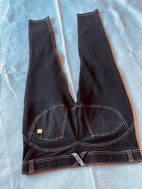 Pantaloni elasticizzati , aderenti di tessuto Jeans grigio scuro strappato . Di Freddy . Mai indossati . Nuovi. Taglia 46- large ( stretti).