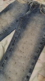 Pantaloni Jeans Liu Jo per bambina con perle, ottima vestibilità, 10 anni, 140 cm.