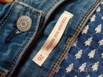Pantaloni / Jeans marca Levi's classici in denim blu, un po' elasticizato, veste tg. XS / S, vita alta. Le misure in foto. Modello iconico. 725™ High Rise Bootcut Jeans.
