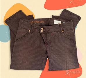 Pantaloni Met marroni con righe, vita bassa della linea linea slim.