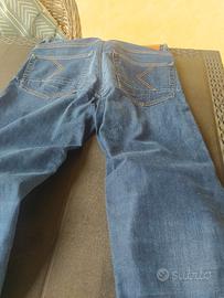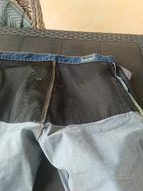 pantaloni moto jeans Blauer HT Denim blu con protezioni rinforzo fibra. Etichetta taglia 36, ossia una XL, tra il 48 e il 50 taglia italiana. Accorciate, ma senza tagliare, quindi allungabili. Dotate di protezione sulle ginocchia regolabili. Usate pochissimo come nuove.