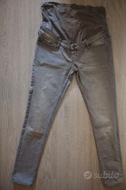 Vendesi pantaloni Jeans Premaman H&M modello Skinny taglia 40 in buone condizioni colore grigio chiaro. Prodotto lavato e igienizzato.