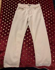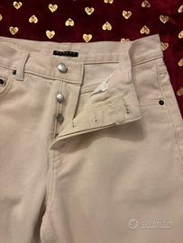 Vendo jeans Sisley modello boyfriend, taglia 27 (IT 40) Colore panna/avorio, vestibilità morbida sulla gamba con linea dritta. Prezzo su listino 89€ Vendo a 16€ Tessuto in cotone strutturato, chiusura con bottoni logati, condizioni ottime. Indossati pochissimo, nessun difetto evidente. Perfetti sia con sneakers che con tacchi per un look casual chic