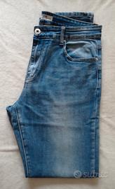 pantaloni uomo jeans -blu/azzurro -cotone, poliestere, elastam -slim fit, tg 50 -vita cm 45, gamba 107 cm