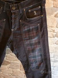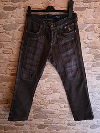 Vendo pantaloni Jeckerson originali da uomo, colore marrone scuro, con eleganti toppe a scacchi sul davanti, perfetti per uno stile casual ma ricercato.