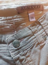 pantaloni Jeckerson in cotone taglio jeans, pied de poule grigio e rosa tenue, in ottimo stato, taglia 28 - veste una 44