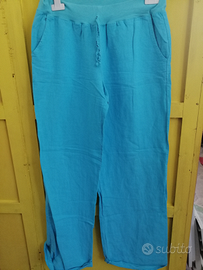 Pantaloni donna di misto lino, freschissimi di un bel turchese, ideali per il mare. Misura M Indossati solo una volta
