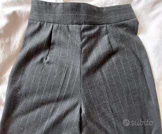 Nuovi,mai messi,nessun difetto. Lana. Colore grigio a righe grigio chiaro. Taglia S, vestono giusto. Modello a vita alta, larghi in fondo. Chiusura a zip laterale. Misure : vita 36,fianchi 48,lunghezza 112,larghezza caviglia 30.