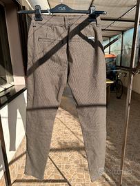 micro pied-de-poule / quadrettino sui toni marrone-beige. Tessuto cotone stretch super comodo e versatile: perfetti sia casual (sneakers) che più elegante (stivaletti/giacca).