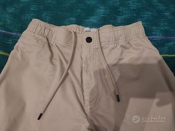 Vendo pantaloni Calvin Klein Jeans originali in tessuto molto sottile e leggero. Modello: Taglio dritto/morbido con vita elastica. Colore: Beige chiaro. Composizione: 97% Cotone, 3% Elastane (tessuto fresco e leggermente elasticizzato). Condizioni: Ottime. Dettagli: Patch logo CK laterale.
