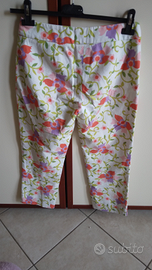 Bellissimo paio di pantaloni estivi di Luisa Spagnoli.Cotone al 98%bella fantasia floreale nei colori di moda modello ,a pinocchietto con piccolo spacco laterale.Chiusura con bottoni dorati come da foto.Taglia40