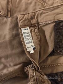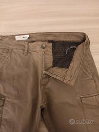 Pantaloni cargo da uomo colore beige. Taglio slim. Alcuni segni d'usura a livello delle tasche. Pantalone lungo da uomo, gamba dritta, colore blu con leggera in tono. Alcuni segni di usura a livello delle tasche.