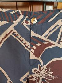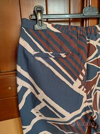 Pantaloni in cotone da donna, brand Manila Grace originali, colori blu/rosa antico e bordeaux come da foto, cerniera e bottone colore argento, finte tasche sul retro, in vita e in fondo alla caviglia un po' di elastico, taglia 46 che corrisponde ad una M, ottima vestibilità, comoda e fresca.