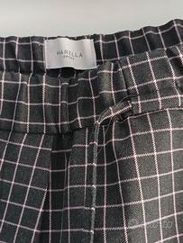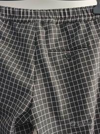 Pantaloni grigio/verde a quadri rosa, vestibilità morbida, vita elasticizzata e coulisse.