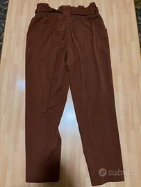 Pantaloni color marrone ruggine con cintura regolabile integrata in vita e fibbie metalliche. ✨