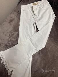 Bellissimi pantaloni MET bianchi a zampa con frange in cotone