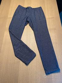 Pantaloni MICHAEL COAL da uomo – tg. 33 (ita 48) in tessuto lino e cotone, chiusura frontale con bottone personalizzato e zip, etichetta logo, cuciture a contrasto e bottone in vita.
