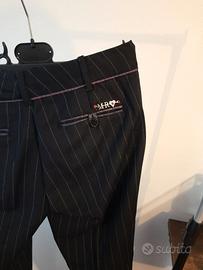 Pantaloni donna taglia 42 Marca Michele Rossi 95% lana e 5% cashmere Colore nero con righe sottili.