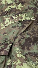 Stile: classico militare, con tasche cargo laterali e chiusura a bottoni.