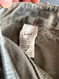 Pantaloni mimetici Scout, con tasche laterali, taglia 36. Vestibilità stretta