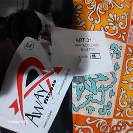 Pantaloni mimetici da donna in maglina di cotone con laccio in vita lunghezza 108 cm taglia M. NUOVO CON CARTELLINO