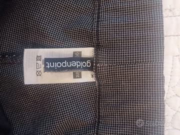 Pantaloni modelli Capri di Golden Point. Tessuto, colore grigio scuro con applicazioni in strass. Taglia XS.