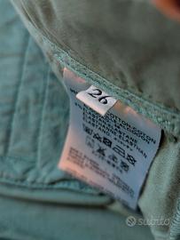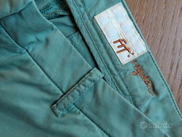 Pantaloni chino color verde menta scuro, di cotone leggero, adatti alla stagione calda. Vestibilità: in figura. Vita medio-bassa. Taglia americana 26.