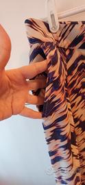 - Tessuto leggero e fluido, con leggera arricciatura laterale al fondo.