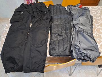 Vendo Pantaloni 4 stagioni Dainese indossati 2 volte causa taglia errata, i pantaloni hanno fodera interna e guaina anti pioggia interna, muniti di tasche laterali e protezioni sulle ginocchie e allogiamento per le protezioni su i fianchi, la fodera e guaina mai indossate.