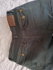 vendo pantaloni moto donna con gamba staccabile (restano shorts) xolor verde petrolio. Taglia 34 americana 48 italiana. Messi 3 volte in perfette condizioni, con protezioni interne laterali e ginocchiere. Misure: lunghezza gamba 110 cm, larghezza 45 cm leggermente elasticizzato in vita.