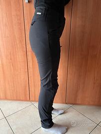 Vendo pantaloni moto in tessuto donna, utilizzati pochissime volte. Infatti il prodotto si presenta come nuovo senza segni di usura. Prezzo di listino 160€ Taglia 28 ( 42 IT ) Elastici e leggeri, hanno ottenuto la certificazione CE in classe A per capi da moto grazie alla ricerca di materiali e processi di costruzione innovativi. SPIDI ha appositamente sviluppato un tessuto a base Nylon, che garantisce alta resistenza al taglio ed all'abrasione uniti ad un'elevata elasticità, assicurata dalla presenza del 4% di Elastan. Charged è ideale per l'uso di qualsiasi tipo di moto turistica, urbana o vintage, sia come pilota che come passeggera. Le tasche in vita anteriori e posteriori si abbinano a quella laterale dotata di zip, di facile accesso anche in sella.