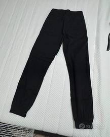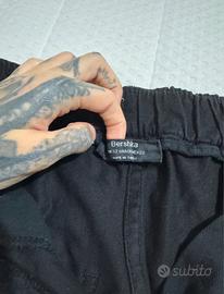 Vendo pantaloni neri Bershka, taglia 32. Modello jogger con elastico alla caviglia, vita leggermente elasticizzata e zip frontale. Tessuto denim comod, morbido e perfetto per tutti i giorni. Condizioni ottime, utilizzati pochissimo. Nessun difetto o segno di usura!