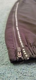 Pantalone nero in tessuto leggero con microrilievi su tutta la superficie, zip dalla caviglia al ginocchio per aprire il pantalone, tre tasche con zip, elastici alle caviglie e lacci a scomparsa, firmato Bershka.