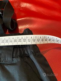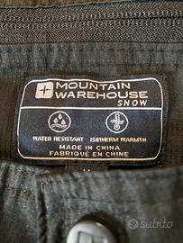 Pantaloni da sci/snowboard neri della Mountain Warehouse (linea Snow). Molto resistenti, caldi e funzionali grazie alle numerose caratteristiche tecniche. Marca: Mountain Warehouse Snow. Taglia: M. Tecnologia: Resistenti all'acqua (Water Resistant) e isolamento termico (Isotherm Warmth). Materiali: 100% Poliestere (guscio, fodera e imbottitura). Dettagli Tecnici: Bretelle regolabili. Ghetta interna paraneve con elastico e apertura a zip/velcro sul fondo gamba per facilitare l'inserimento degli scarponi. Misure reali: Lunghezza circa 110 cm; Vita circa 42 cm (regolabile). Condizioni: Pari al nuovo, pronti per la pista.