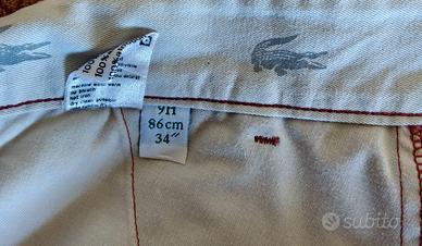 A PRESCINDERE DAL PREZZO INDICATO FARE UN'EVENTUALE PROPOSTA D’ACQUISTO PANTALONI ORIGINALI LACOSTE DA UOMO Come da fotografie puramente indicative vendo a titolo di realizzo un paio di pantaloni originali Lacoste da uomo di fattura superiore: Taglia 48 corrispondente da etichetta alla 54 italiana Vestibilità regolare extra lungo Adatto per uomo o giovane di altezza minima 1 metro e 80 cm. Tessuto in cotone 100% Colore EFFETTIVO rosso porpora velato Confezionati con pinces Sfoderati internamente Chiusura con zip Tirapancia con bottone Lacoste Sei passanti per cintura inseriti all’interno del taglio e fermati da travetti Impunture sartoriali di rito tono su tono Due tasche anteriori diagonali classiche Due tasche posteriori orizzontali classiche con bottoni Lacoste Lunghezza pantalone dalla vita posteriore al battitacco compreso 118 cm. Lunghezza pantalone dalla vita anteriore al battitacco compreso 115 cm. Lunghezza pantalone dal cavallo al battitacco compreso 86 cm. come da etichetta Il capo è stato indossato ma è in ottimo stato. L'etichetta di composizione del tessuto potrebbe essere stata accuratamente tagliata per abitudine del proprietario. Questi pantaloni fanno parte dell'abbigliamento classico per il lavoro e il tempo libero. LEGGERE TUTTO CON ATTENZIONE. RESTITUZIONE NON ACCETTATA. Questa è un'inserzione di compravendita tra privati esule da qualsiasi garanzia, a parte quanto scritto a proposito dello stato dei pantaloni. Non mi assumo quindi nessuna responsabilità riguardo all'utilizzo sbagliato dei medesimi rispetto all'uso consentito. Tanto meno per ritardi, danni o qualsivoglia problema occorso durante la spedizione. Tuttavia, in caso di spedizione, è a discrezione dell’acquirente richiedere la spedizione assicurata a sue spese, che dovrà essere pagata prima del ritiro dei pantaloni già menzionati, da parte del corriere incaricato del trasporto.