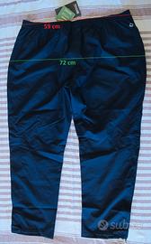 Pantaloni sportivi da donna in tessuto tecnico impermeabile, traspirante e antivento Isotex 1000 elasticizzato. Marca Regatta. Consigliati per escursionismo o trekking estivo. Taglia: waist 44-46 inches, UK 3XL, FR 54-56, EU 52-54, IT 58-60. Elastico in vita. Interno gamba 31 inches. Misure di larghezza in foto: vita 59cm, fianchi 72 cm, coscia 43 cm, fondo gamba 22 cm. Lunghezza in foto: interno gamba 78 cm, 110 cm totale, altezza vita 37 cm (vita alta). Cerniera laterale dal fondo della gamba al ginocchio. Tasche laterali con cerniere Color navy, più scuro di come rende in foto. Nuovi con cartellino. Prezzo pagato 39,95 Euro. Ritiro a mano o spedizione con TuttoSubito